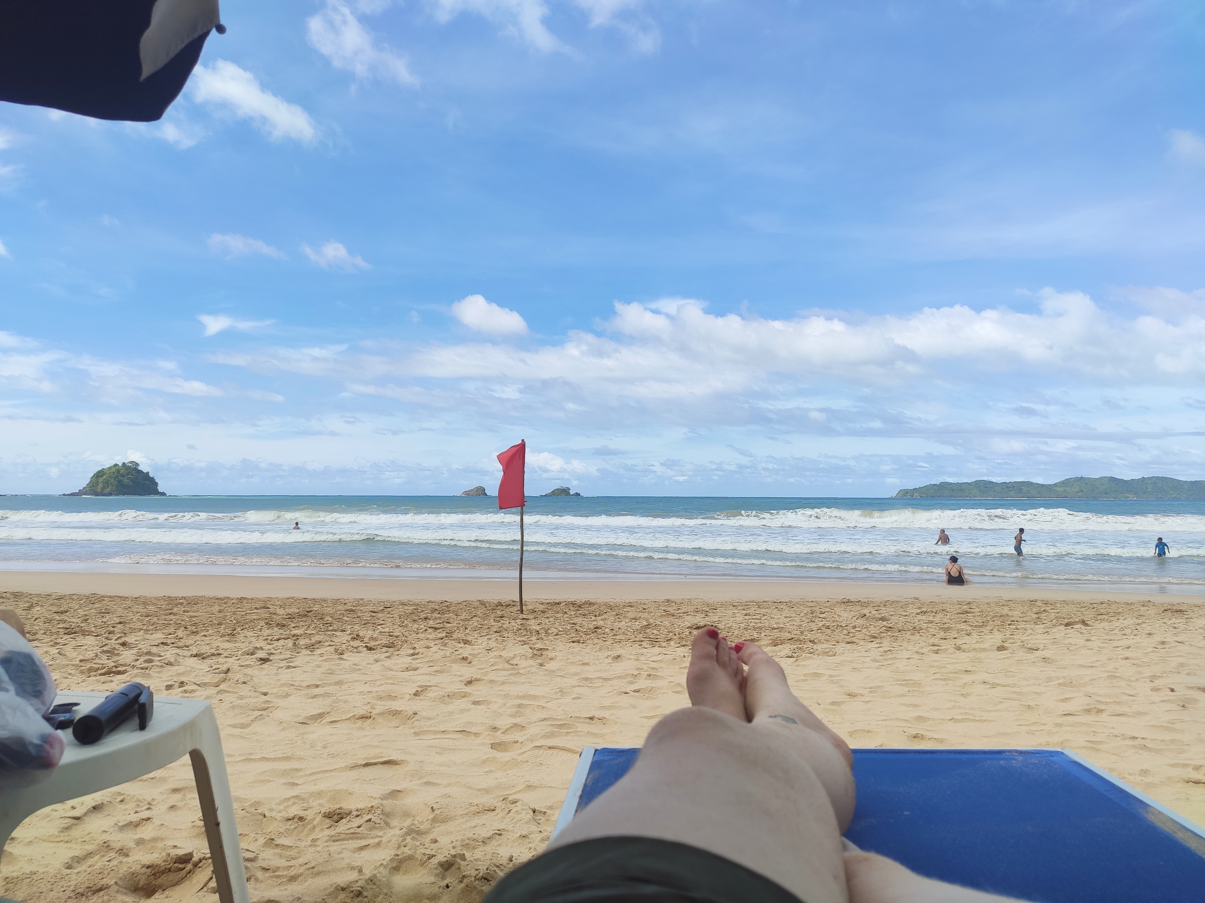 We settled ourselves on some sun loungers that were provided (for a small fee) by Maremegmeg Beach Club and they came out with a drinks menu. I was delighted to discover they had soya milk for their iced coffees, so I treated myself to the most refreshing iced coffee. Very relaxing and nice spot with nice views too. The food menu also has some vegan options.
