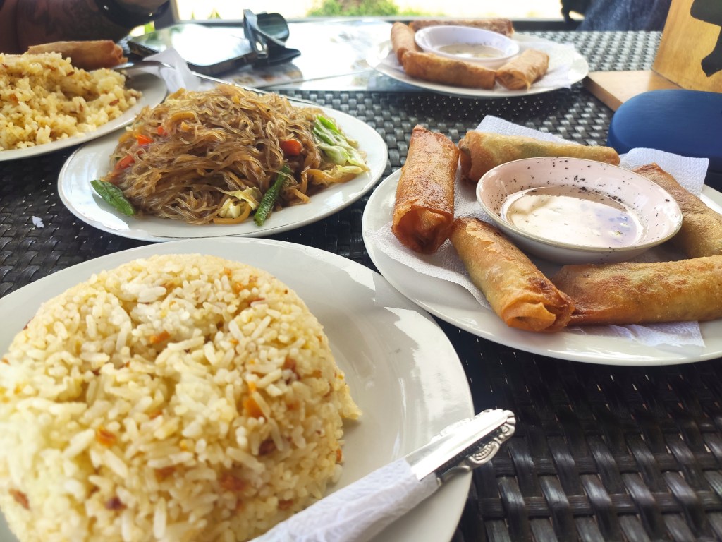 We tried pancit bihon (180 pesos around €3), lumpiang gulay (150 pesos around €2.50) and garlic rice (70 pesos around €1.20). It was a very popular restaurant and easy to see why, portions were generous and I had a refreshing calamansi juice too. It was all delicious and one of my favourite meals that I had whilst staying in El Nido.
