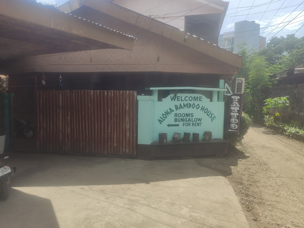 Whilst Oliver was getting his tattoo from the brilliantly talented Dyl at Darkside Tattoo at Alona Beach (see below), I went to visit Momo Beach. It seems like pre typhoon Odette of December 2021, this was a beach that was well looked after with accommodation and a quiet but thriving tourist scene. The remains of some infrastructure, marked as Momo Beach Escape on Google Maps, can be seen.