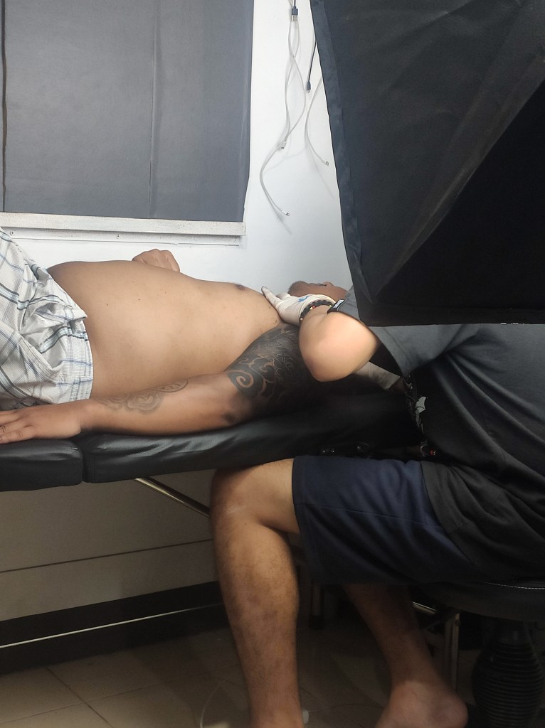 Dyl is a friendly tattooist with incredible skill and talent. He came up with a design to suit Oliver that went well over the one to be covered up and was in keeping with the rest of his sleeve. He was incredibly accommodating, especially considering we didn’t have much time left in Panglao. He pulled out all the stops to get the ink done before we left. The studio is clean, cool and tidy, it felt like he was in good hands. The completed tattoo is definitely now one of my favourites.