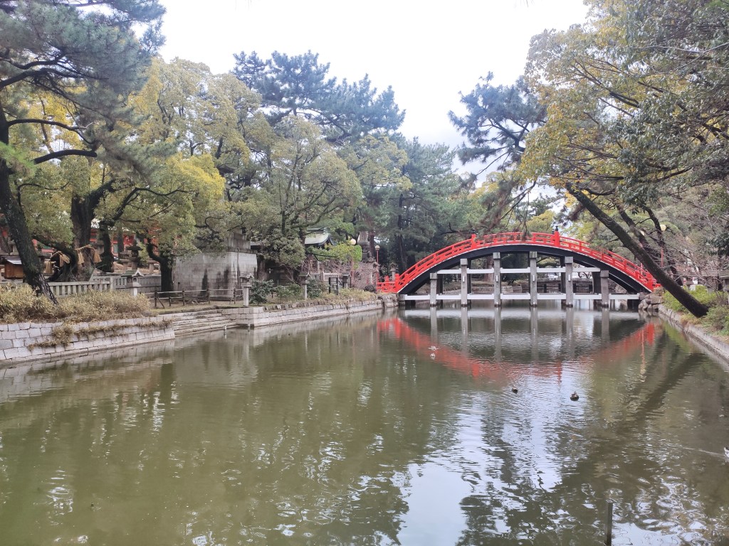 Sumiyoshi Taisha is one of the most beautiful shrine grounds I’ve ever been to. Sumiyoshi sanjin is a name grouping the three Shinto Gods of the sea – Sokotsutsu no O no Mikoto (底筒男命), Nakatsutsu no O no Mikoto (中筒男命), and Uwatsutsu no O no Mikoto, so Sumiyoshi Taisha is a shrine dedicated to these three Gods. It is the head of around 2,300 Sumiyoshi shrines placed all around Japan. It was founded in 211 by Tamomi no Sukune, ordered to enshrine the Sumiyoshi by Empress Jingu.