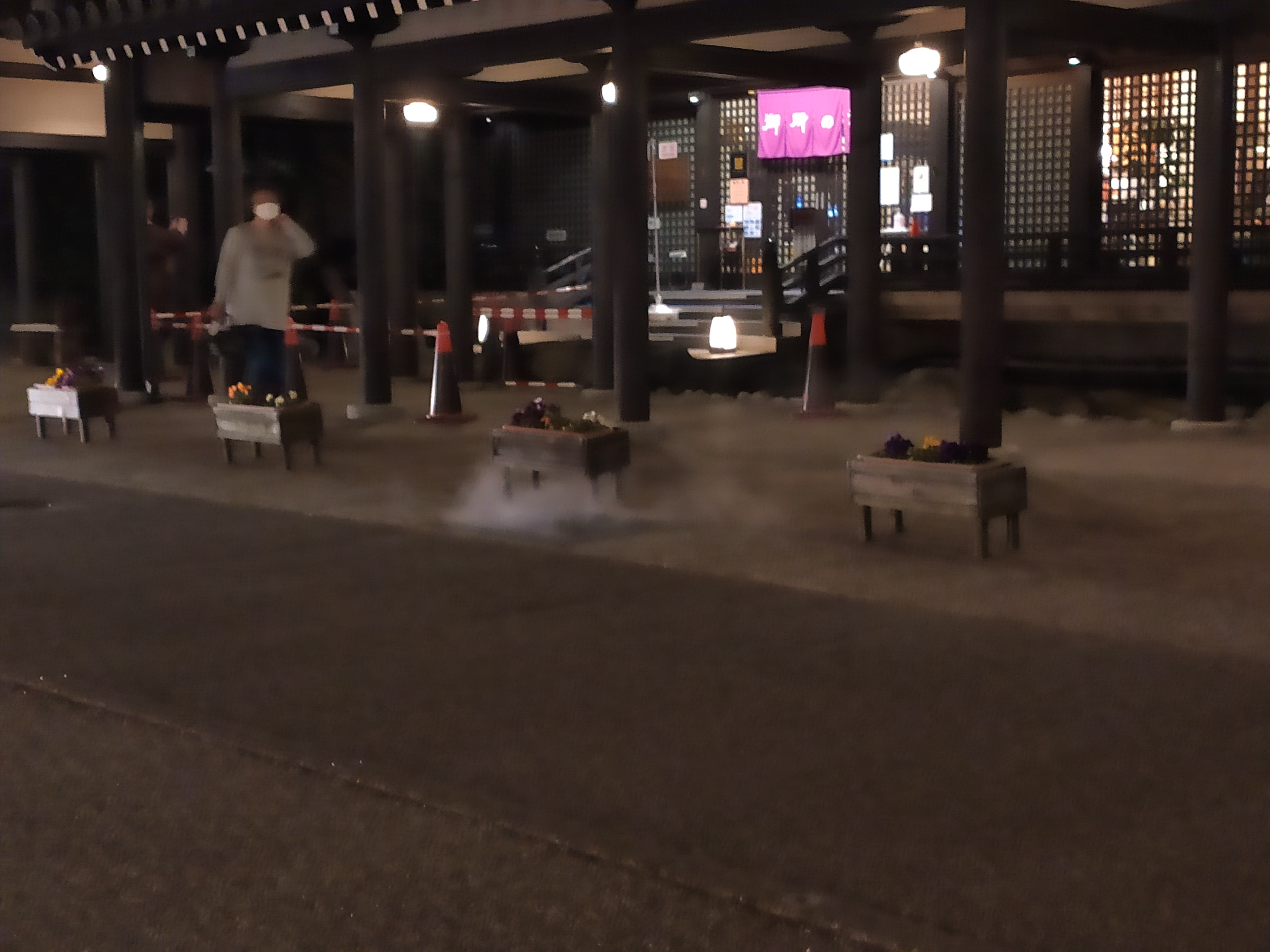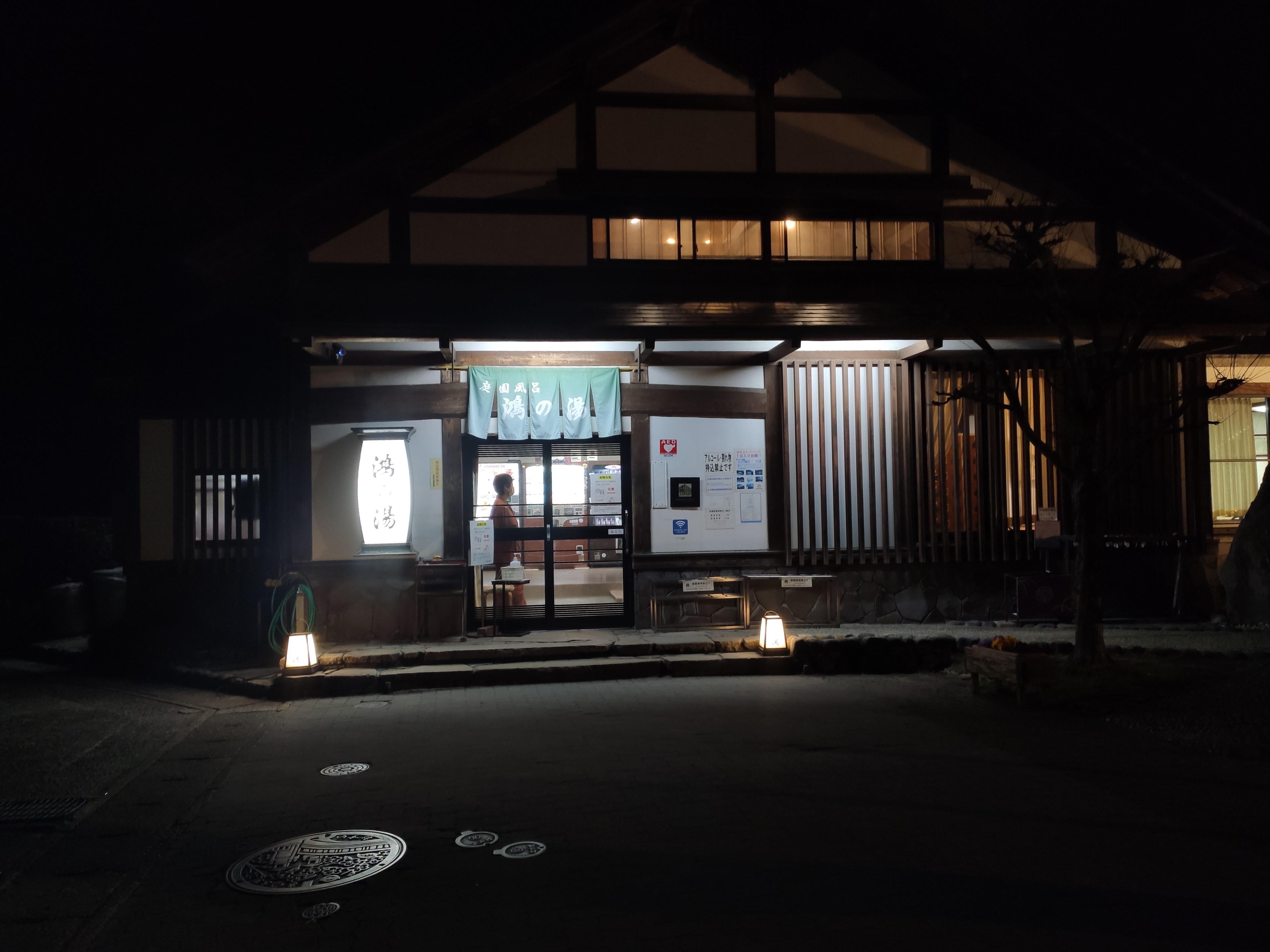 Goshono-yu has the most striking exterior and was built in the style of Kyoto’s Imperial Palace. It was in the dark of the evening when we got here, and we noticed the magical visual of the steam of the hot water coming up from the grates of the street. Goshon-yu is known as ‘Water of Beauty’ and lives up this inside and out.